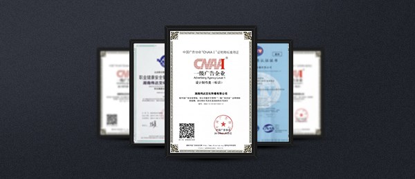 企業已通過9項資質認證,榮獲國家一級企業、湖南省一級廣告企業等18項榮譽,9項國家專利,產品安全可靠